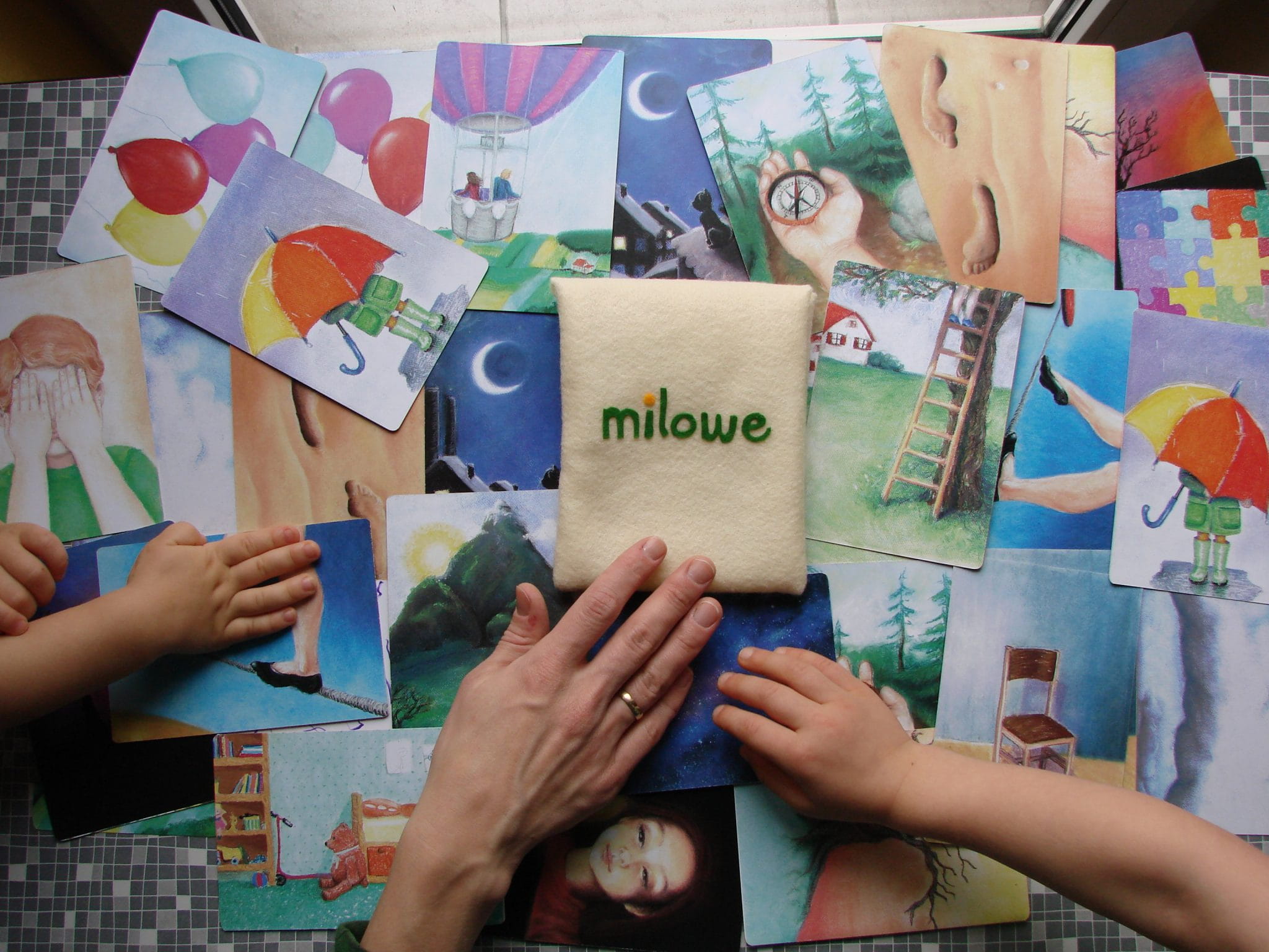 Karty MILOWE poprzez rozwojowe gry i zabawy bazujące na ręcznie namalowanych pięknych obrazach/kartach, pobudzają dziecięcą (ale i naszą - dorosłą) kreatywność, otwierają się na nowe rozwiązania, uczą zasad budującej i wspierającej komunikacji, pielęgnują fundament, z których dziecko będzie mogło czerpać w dorosłym życiu.