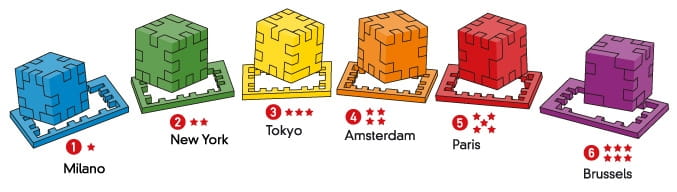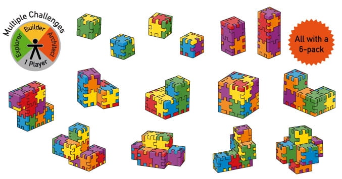 Z 6-cio częściowych puzzli budujemy najpierw sześcian (3-D), a następnie próbujemy zmieścić je z powrotem w ramce (2-D). Zdobyły one wiele prestiżowych nagród.