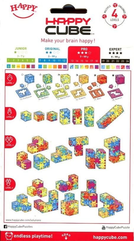 Happy Cube PRO to zestaw trudny. Dedykowany jest osobom w wieku od 7 do 125 lat.